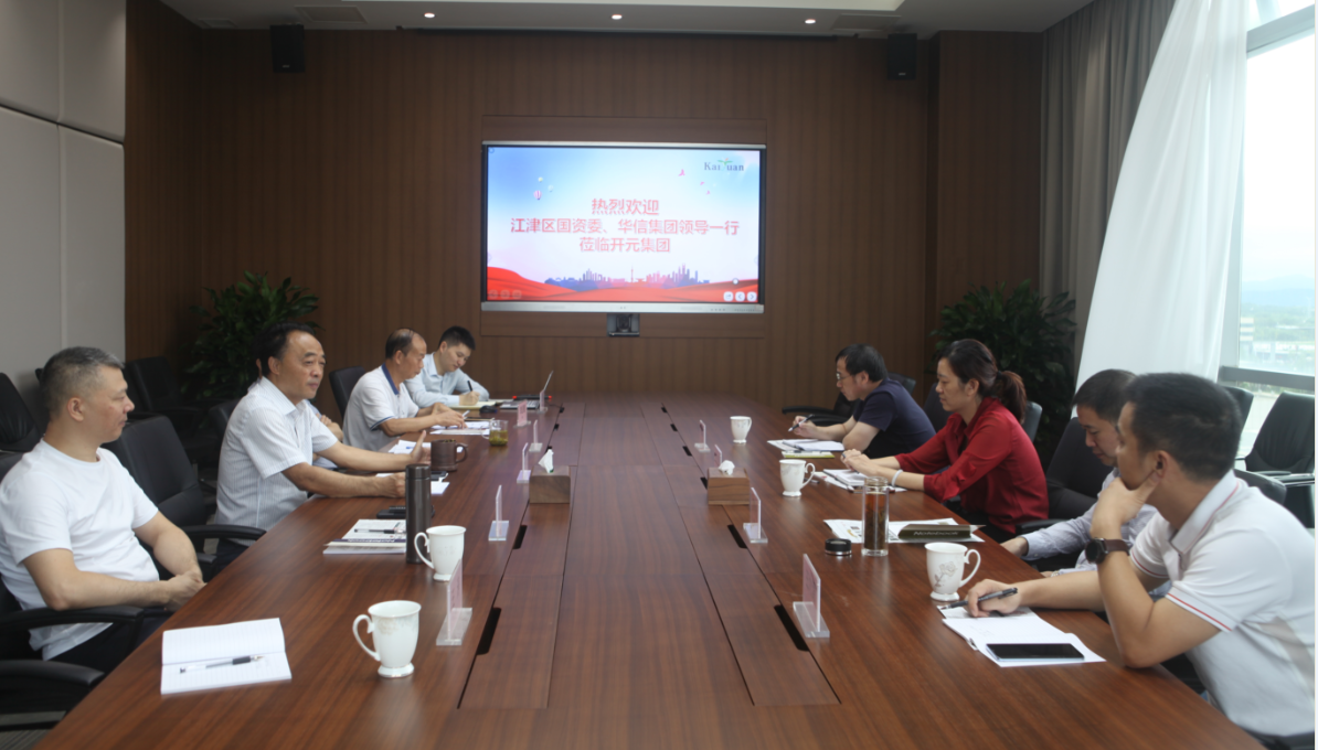 2019年9月10日,重慶江津區國資委國資中心副主任張容、華信資產管理公司董事長周隆彬一行到訪開元集團總部,與集團董事長趙思儉、總裁杜勇就集團擬在重慶江津與華信集團的項目合作進行交流座談。