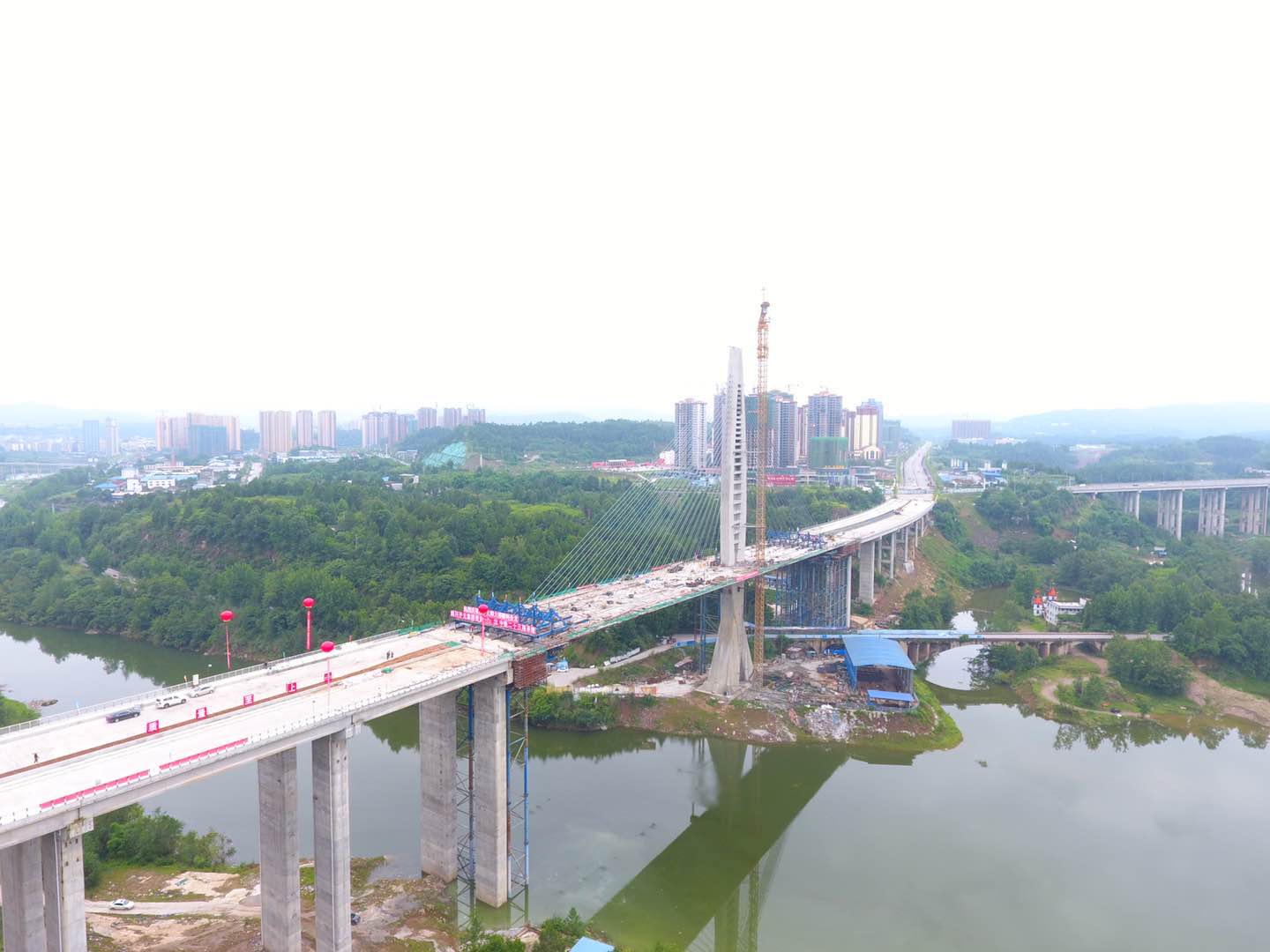 6月28日晚23點,煙花璀璨,鞭炮齊鳴,隨著最后30方混凝土澆灌作業的順利進行,歷時4年建設的義陽大橋實現合龍,標志著巴中以及川東北地區首個特大異型獨臂斜拉橋的主體工程順利完工。巴中恩陽新區,一座嶄新地標巍然屹立。而達成基建狂魔這一新成就的正是四川開元集團。