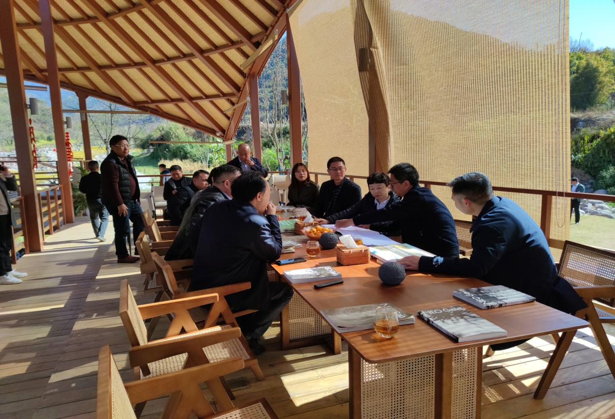 在澗茶臺,劉州長一行仔細觀看了項目設計及產業規劃視頻,并認真聆聽了公司關于項目總體規劃方面的情況匯報。