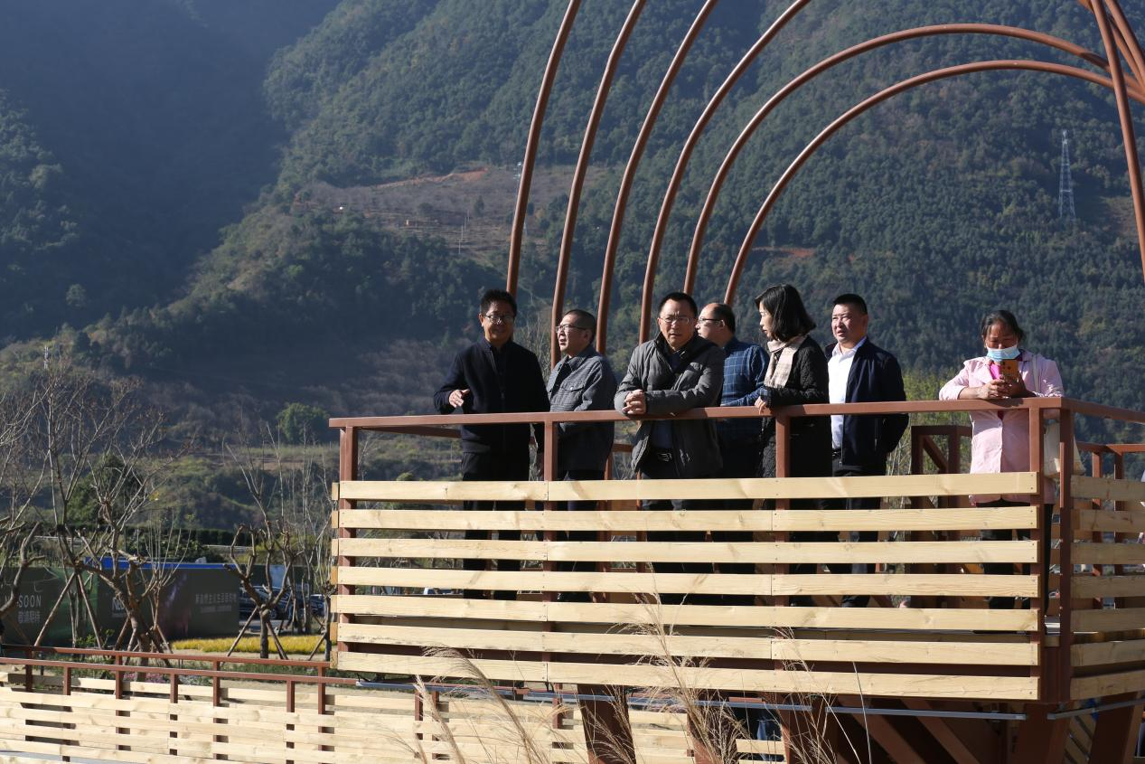 李總陪同客戶一同游覽了公園溪地景觀。在參觀過程中,李總向客戶重點介紹了海花溝特有的安寧河谷氣候以及四季豐富的特色果蔬產出,并帶領客戶登上瞭望臺遠眺螺髻神山。