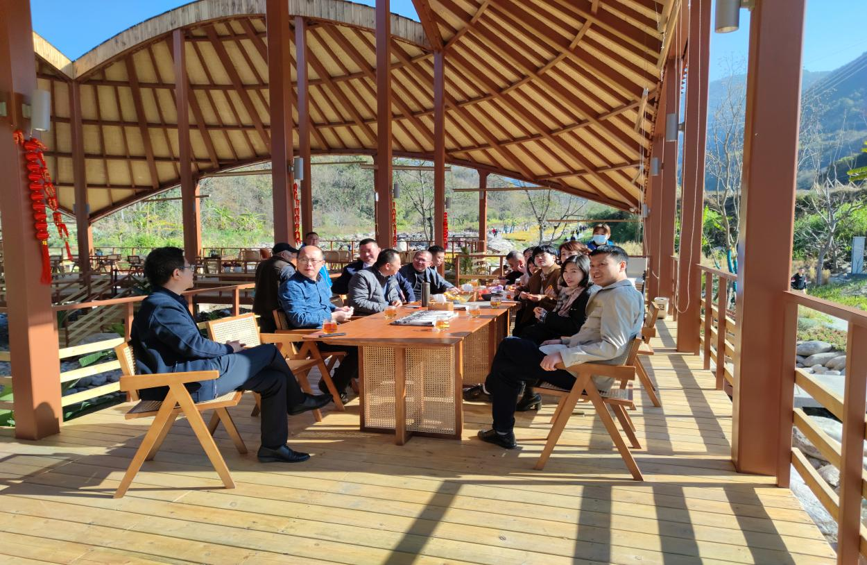 2022年2月15日上午,南充客戶考察團一行13人到訪海花溝大地公園參觀游覽,鳳棲和谷副總經理李濤代表公司對客戶的到來表示熱烈的歡迎。