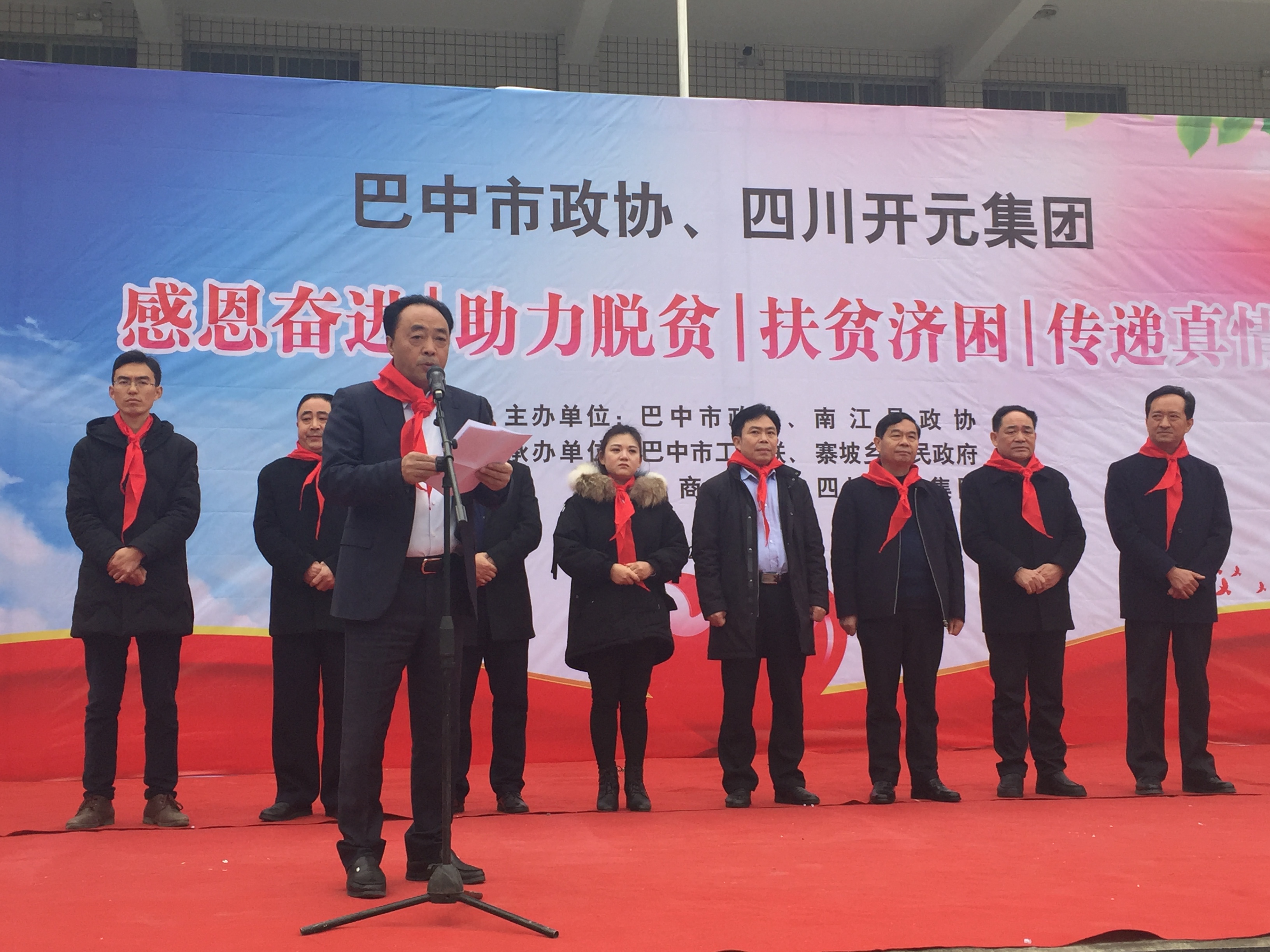 2月22日,在巴中市政協(xié)“創(chuàng)引幫”活動(dòng)的感召下,由市政協(xié)、四川開元集團(tuán)主辦,市工商聯(lián)、南江縣委縣政府,南江縣政協(xié)、寨坡鄉(xiāng)黨委政府、巴商總會(huì)和四川南江光霧和谷旅游開發(fā)公司協(xié)辦的寨坡鄉(xiāng)助學(xué)、助老、助殘活動(dòng)在寨坡小學(xué)隆重召開。